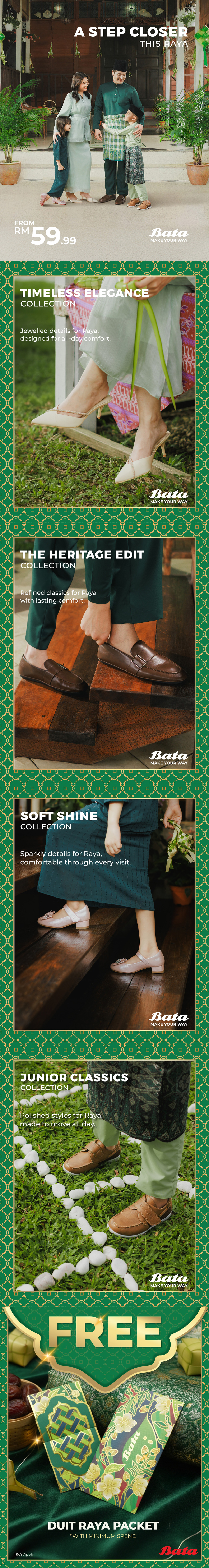 Receive a FREE Bata Exclusive Duit Raya Packet (designed by Novak Batik) with minimum spend. *T&C Apply and while stocks last.